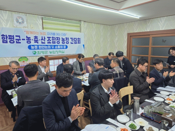 함평군은 24일 “농‧축‧산 농정 간담회가 지난 22일 관내 식당에서 성공적으로 마무리됐다”고 밝혔다.