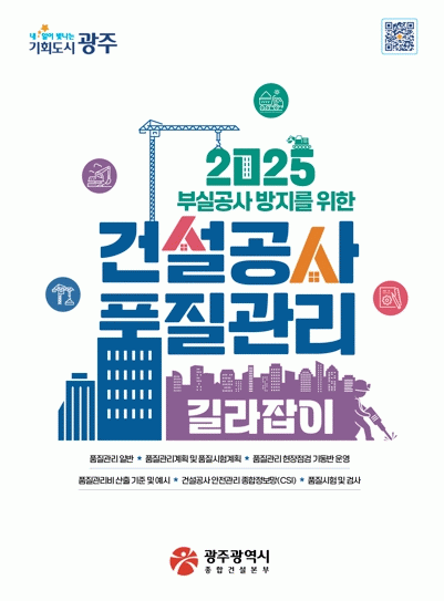 신재욱 광주종합건설본부장은 “이번 지침서를 통해 건설현장에서 반복적으로 발생하는 품질문제와 안전사고를 예방하는 데 큰 도움이 될 것”이라며 “앞으로도 업무지첨서를 지속 개선해 현장 적용성을 높여 공무원과 건설공사 관계자들의 품질관리 역량 강화에 적극 활용하겠다”고 말했다.