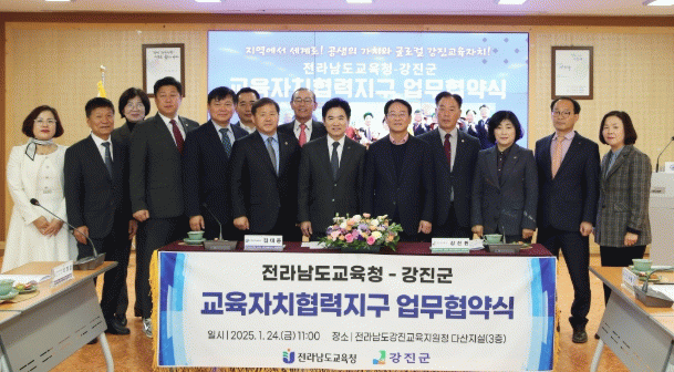 강진교육지원청에서 열린 이날 협약식에는 강진원 강진군수, 김대중 전라남도교육감, 이병삼 강진교육지원청 교육장 등 관계자들이 참석했다.