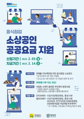 지원 대상은 2024년 12월 16일 기준 담양군 내 사업장 등록·유지 중인 음식점업 소상공인으로, 상시 근로자 5인 미만, 연매출 1억 4백만 원 미만(간이과세자 기준)인 업체다.