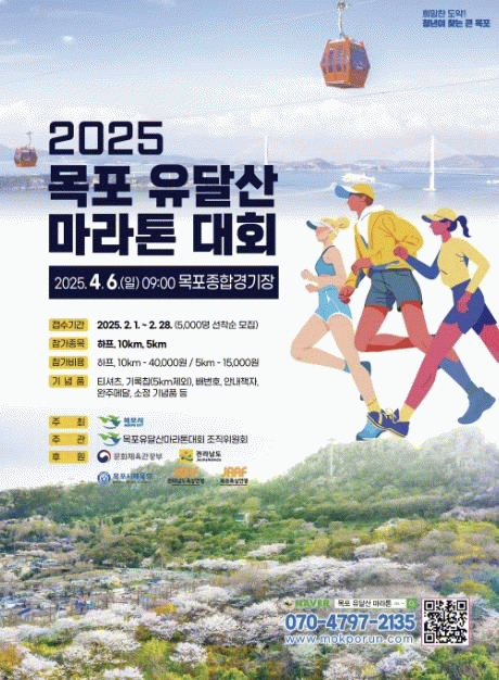 시 관계자는 “목포의 명소를 달리며 아름다운 자연과 문화를 만끽하고, 유달산 봄축제도 함께 즐길 수 있도록 코스 구성에 많은 노력을 기울였다”며 “많은 분들이 참가해 특별한 추억을 만들기 바란다”고 말했다.