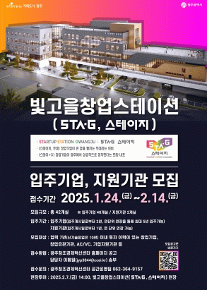 광주광역시는 지난해 12월 광주역 창업밸리 첫 인프라인 ‘빛고을창업스테이션’(STA‧G, 이하 스테이지)을 준공, 오는 14일까지 입주 기업을 모집한다.