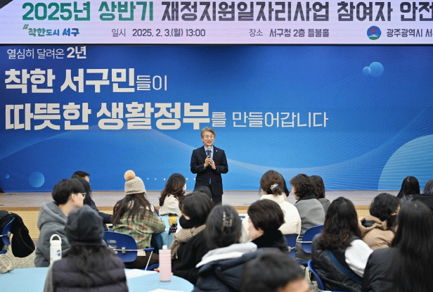 한편 재정지원일자리사업은 서구 관내 취업 취약계층들의 생계 안정을 위한 일자리를 제공하는 사업으로 찾아가는 빨래방 운영지원, 도로안전 지킴이 등 39개 사업으로 이루어져 있다.