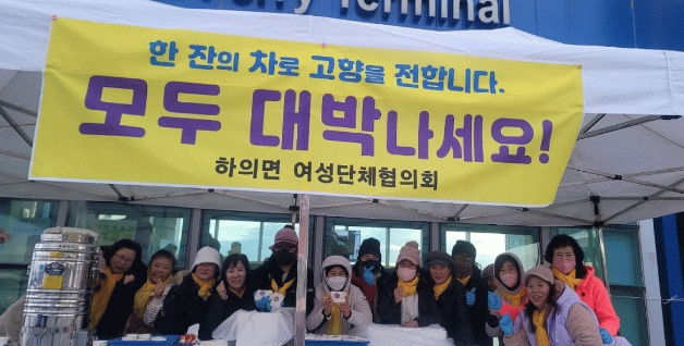 하의면 여성단체협의회(회장 임영금)가 주관으로 하의면의 관문인 웅곡선착장에 무료 찻집을 마련하고 배에서 내리는 귀성객들을 맞으며 무료 차 나눔과 서로의 소식을 나누는 소중한 시간을 가졌다.
