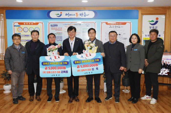 두 기업인은 장흥군 체육진흥기금에 1천만원, 장흥군 체육회운영기금에 1천만원을 기탁하며 지역 체육 발전에 힘을 보탰다.