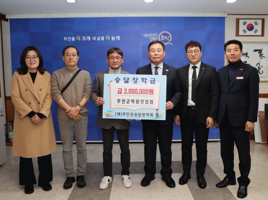 이번 장학금은 무안군 학원연합회 회원들이 무안군 교육발전을 위해 마련했으며, 회원들의 뜻을 모아 송성섭 대표가 장학금을 전달했다.