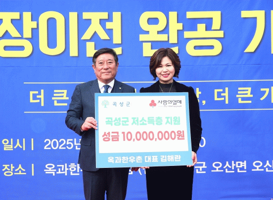 이번 기탁식은‘더 큰 공간, 더 큰 사랑, 더 큰 가치’라는 주제로 진행된 옥과한우촌 본점 확장 이전 완공 기념식과 함께 진행됐으며, 조상래 곡성군수, 옥과한우촌 김일재 회장, 김해란 대표 등 100여 명이 참석하여 지역사회 행복 나눔 실천 의지를 보이는 의미 있는 행사로 진행됐다.