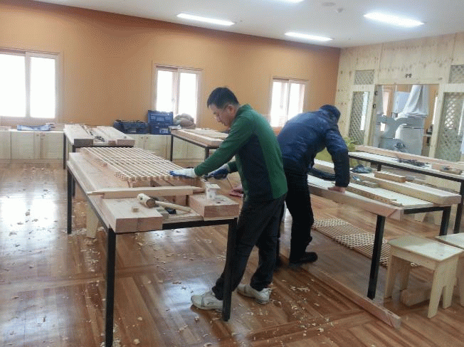 ‘목공예 기능인 교육’은 목재 산업 전문인력 양성 기초과정이고, ‘목공예 동호회 교육’은 기능인 교육 수료자 심화과정이다.