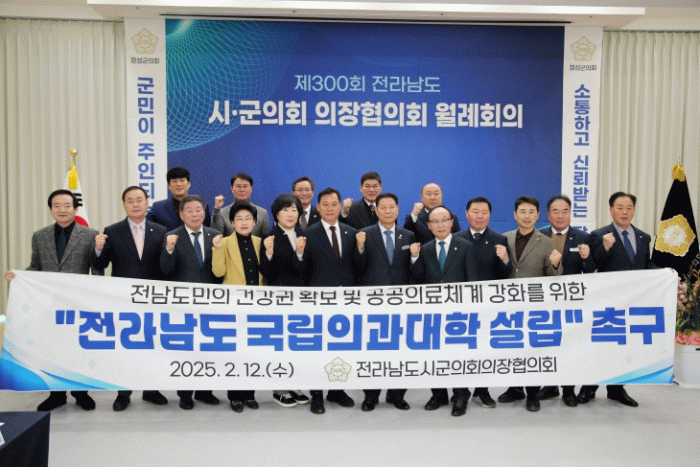 끝으로, “정국이 불안정하더라도 정부의 대국민 약속은 반드시 지켜져야 한다”며, 전남 시·군의회의장협의회와 함께 정부의 신속한 의대 신설 추진을 강력히 촉구했다.