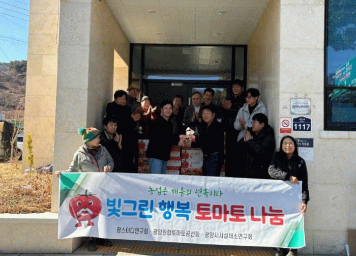 광양시는 13일 시설채소연구회(회장 문영운)가 직접 재배한 토마토 100kg을 진상면 희망노인복지센터에 기부했다고 밝혔다.