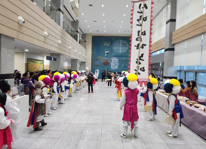 임자도 주민농악단은 청사를 돌며 신안군의 무사 안녕을 염원했다.