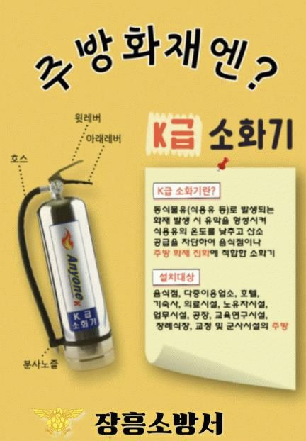 [K급 소화기 비치 및 사용법 안내]