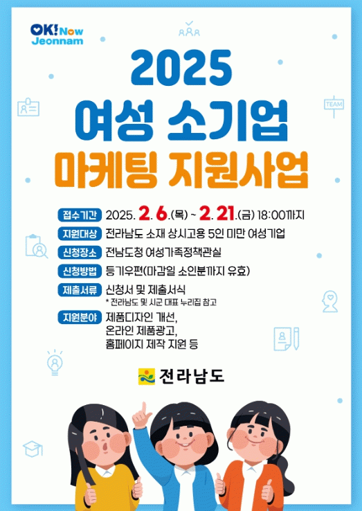 전남 사업장 중 여성이 대표자인 상시 고용인력 5인 미만인 기업을 대상으로 공모를 진행, 기업 신청을 받아 서류 심사와 현장 심사를 거쳐 지원 대상 기업을 최종 선정한다.