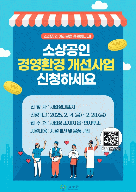 조상래 곡성군수는 “소상공인의 경영환경을 개선하는 것은 곧 소상공인의 사업 경쟁력 강화와 매출 증대, 지역경제 활성화로 이어질 수 있을 것이다. 이번 사업이 매출 감소로 시름하는 지역 소상공인에게 큰 힘이 되길 바란다”라고 전했다.