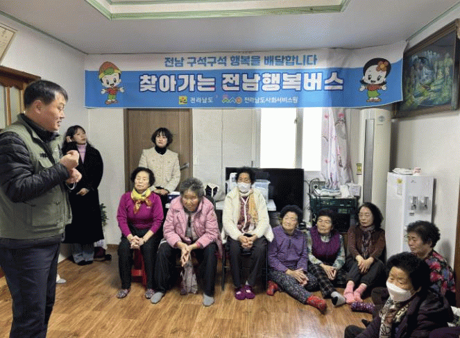 ‘찾아가는 전남행복버스’는 전라남도(사회서비스원)와 함평군이 협업해 도심과 떨어져 사회서비스가 열악한 농촌 주민에게 맞춤형 의료·보건·복지서비스를 지원하는 사업이다.