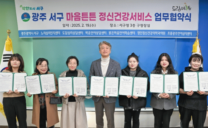 서구는 19일 노리심리인지센터, 도담심리상담센터, 박윤언어상담센터, 밝은마음언어학습센터, 정인정신건강의학과의원, 프롬광주언어심리센터 등 6개의 심리·언어 전문 치료기관과 ▲심리검사 및 치료 ▲언어검사 및 치료 비용 등을 지원하는 내용의 업무협약을 체결했다. 이에 따라 서구는 1인당 월 지원금을 기존보다 5만원 상향해 월 20만원씩 최대 2년까지 지원한다.