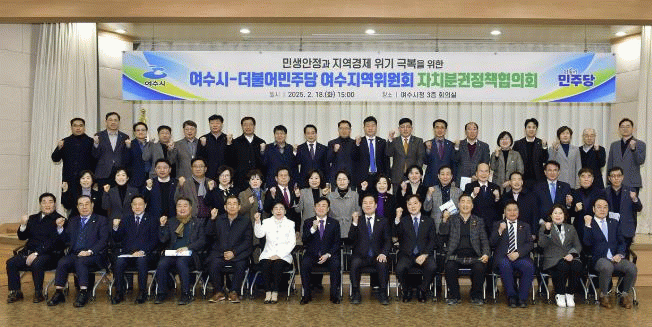 이날 자치분권정책협의회에 여수시에서는 정기명 시장, 부시장을 비롯한 간부공무원 등 20여 명, 더불어민주당에서는 주철현 국회의원, 조계원 국회의원, 도‧시의원을 비롯한 주요 당직자 40여 명이 참석했다.