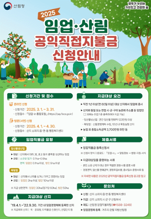 온라인 신청은 3월 1일부터 3월 31일까지이며, ‘임업-in(통합포털에서 신청할 수 있다.