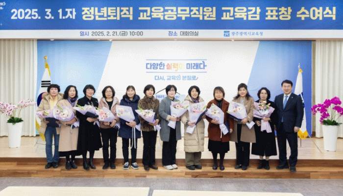 3월 1일 자 정년퇴직 교육공무직원은 총 78명이며, 이중 표창 수여 대상은 5년 이상 공립학교와 기관에서 근무하며 광주교육 발전에 기여한 38명이다.