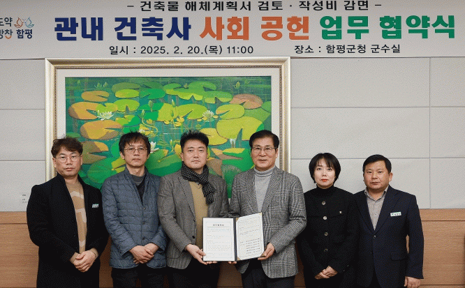 함평군은 21일 “함평군과 함평군에 등록된 건축사들이 지난 20일 건축물 해체 수수료 감면을 위한 업무 협약을 체결했다”고 밝혔다.