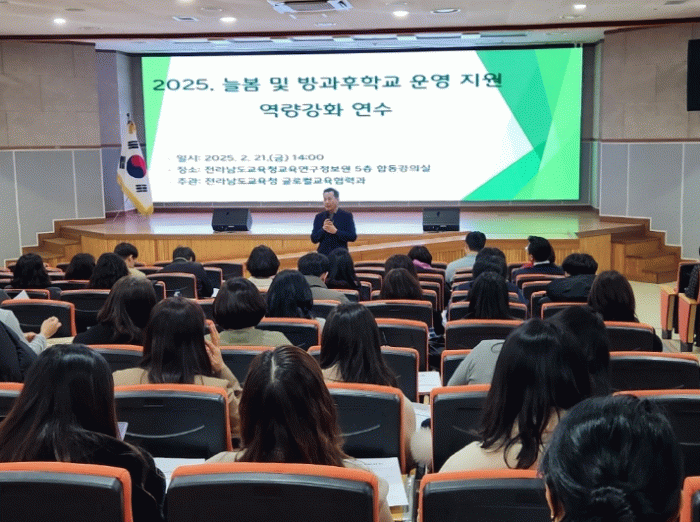 연수 내용은 ▲ 2025. 늘봄학교 운영 안내 ▲ 2025. 중등 방과후학교 운영 안내 ▲ 방과후 자유수강권 개정 사항 안내 등으로 구성됐다.