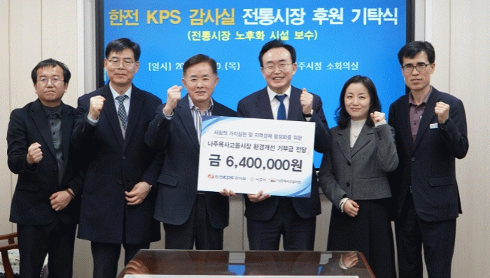 윤병태 나주시장은 “한전KPS 감사실의 따뜻한 나눔 실천에 깊이 감사드린다”며 “이번 기탁을 통해 시민들이 더 편리하고 안전하게 전통시장을 이용할 수 있는 환경을 조성하겠다”고 전했다.