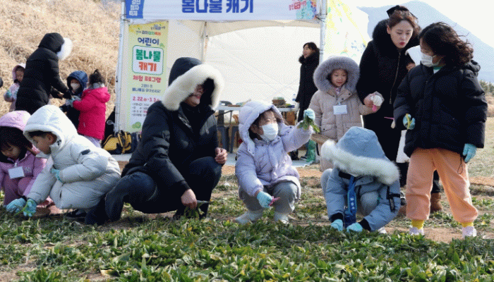 ‘흙 사람 그리고 불’이란 주제로 제53회 강진청자축제가 강진군 대구면 청자촌 일원에서 열리고 있는 가운데 지난 24일 다소 쌀쌀한 날씨에도 불구하고 축제장을 찾은 어린이들이 고사리 손으로 봄나물을 캐며 즐거운 한 때를 보내고 있다.