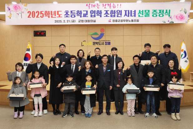 이천영 장흥부군수는 “아동이 살기 좋은 아동친화도시에 걸맞게 초등학교 입학을 앞 둔 직원을 격려해 주신 공무원노조에 감사드리며, 앞으로도 우리 아이들이 밝고 씩씩하게 마음껏 뛰어 놀 수 있는 행복한 장흥을 만들어 나가겠다고 말했다”