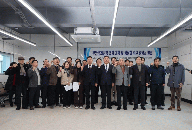 이날 성명서 발표에는 김산 무안군수와 이호성 무안군의회 의장, 무안국제공항활성화추진위원회 위원, 무안군 사회단체 등 30여 명이 참석하여 무안국제공항의 항행안전시설을 조속히 복구하여 조기 개항할 것을 촉구했다.