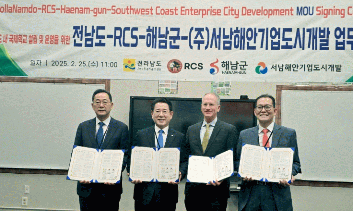 김영록 지사는 “이번 협약을 통해 외국 교육 인프라 기반이 마련돼 외국인 투자 유치와 솔라시도 기업도시 개발에 큰 도움이 될 것으로 기대한다”며 “솔라시도에 외국교육기관의 성공적 설립·운영을 위해 적극 지원하겠다”고 말했다.