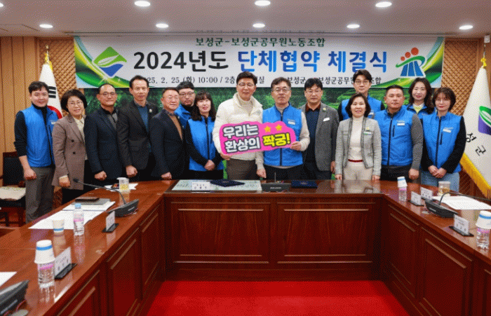 보성군과 보성군공무원노동조합은 2024년 12월 노동조합의 요구로 시작된 단체교섭을 약 2개월 만에 마무리하고, 이날 김철우 군수를 비롯한 교섭위원 17명이 참석한 가운데 협약 체결식을 진행했다.