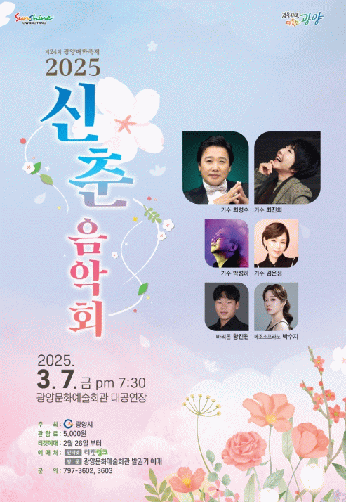 김명덕 문화예술과장은 “즐거운 공연을 통해 겨우내 움츠렸던 몸과 마음을 활짝 펴고, 신나는 음악과 함께 에너지를 마음껏 발산하는 시간이 되길 바란다”며 “앞으로도 더욱 멋진 공연을 마련해 시민들에게 힐링의 시간을 선물하겠다”고 말했다.