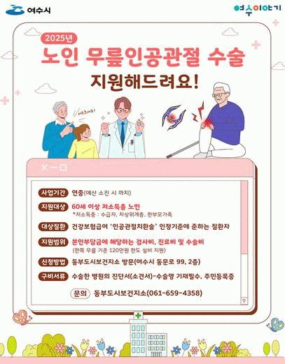 한편, 여수시는 지난해 노인 33명의 무릎인공관절 수술 42건을 지원했다.