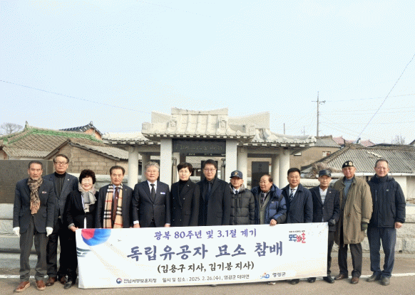 이번 독립유공자의 묘소 참배는 전남서부보훈지청과 함께 광복 80주년과 제106주년 3․1절을 맞이하여 우리 지역의 대표 독립유공자의 희생과 헌신을 기리기 위해 진행하였으며 영광군수, 전남서부보훈지청장(이향숙), 광복회 전라남도지부장(송인정), 영광군 보훈단체장을 비롯해 유족대표인 김주원, 김경신 등 관내 주민들이 참석했다.