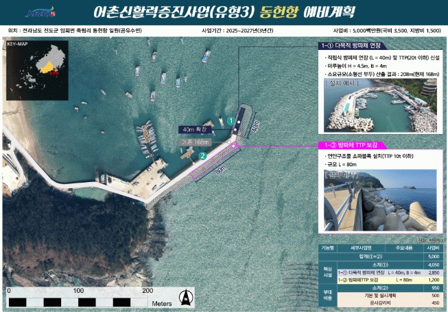 한편 진도군은 지난 2019년부터 ‘어촌뉴딜300사업’을 15개 어항에 총 668억 원을 투입해 추진하고 있고, ‘어촌신활력증진사업’은 이번에 선정된 1건(사업비 50억 원)을 포함해 2023년도 2건(사업비 100억 원), 2024년도 2건(사업비 350억 원), 총 500억 원을 확보해 추진 중이다.