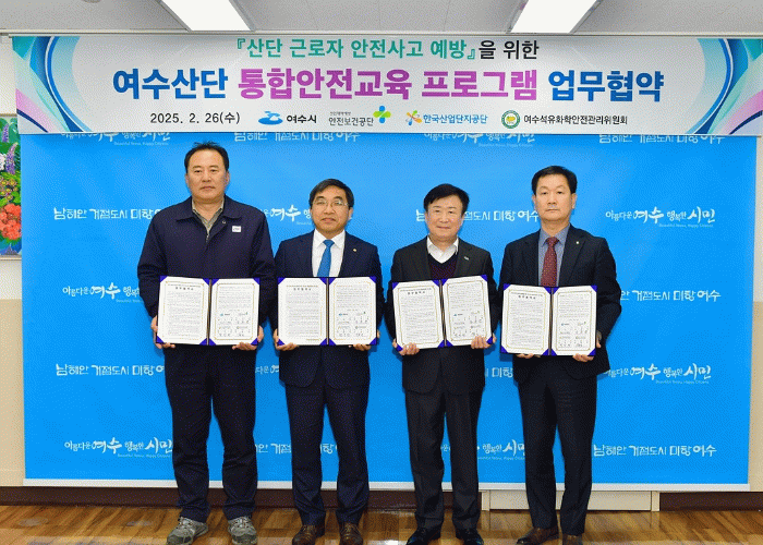 협약에 따라 여수시와 한국산업단지공단 전남지역본부는 통합안전교육 프로그램 운영 및 홍보를, 한국산업안전보건공단 광주광역본부는 안전교육 프로그램과 교육시설 제공을, 여수석유화학안전관리위원회는 산단 근로자가 프로그램에 참여할 수 있도록 지원할 예정이다.