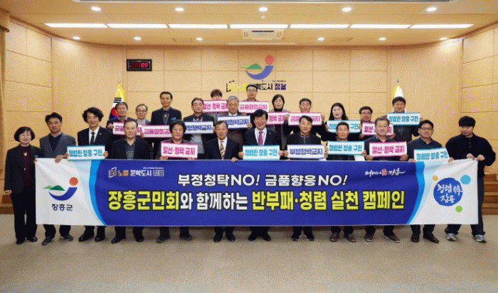 이날 캠페인에는 김성 장흥군수 및 주재용 장흥군민회장을 비롯한 읍면 군민회장과 읍면장들이 참여하여 청렴한 지역사회 조성을 위해 뜻을 모았다.