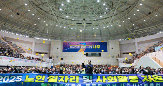 나주시는 지난 25일 나주스포츠파크 다목적체육관에서 일자리 참여자 1500여 명이 참석한 가운데 ‘2025년 노인일자리 사업 발대식’을 했다고 27일 밝혔다.