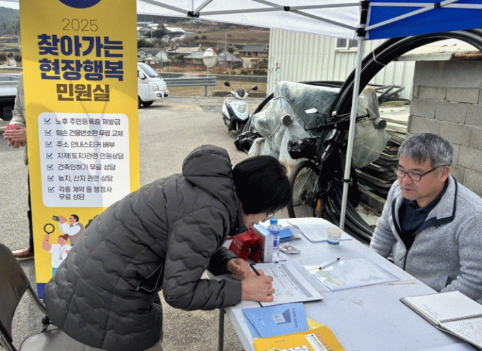 군 관계자는 “찾아가는 현장 행복민원실을 통해 군민들의 민원 편의를 더 높이고, 한발 더 나아가 군민 감동으로 다가서는 최상의 행정서비스를 제공하기 위해 최선을 다할 계획이다”고 말했다.