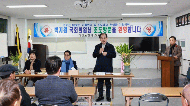 조도면 노인회 사무실에서 진행된 이날 간담회에는 박지원 국회의원, 김희수 진도군수, 박금례 진도군의회의장, 김인정 도의원, 주만종 군의원과 조도면 노인회, 신조도대교 건설추진위원회, 톳생산자 협의회, 조도면 기관사회단체장 등이 참석했다.