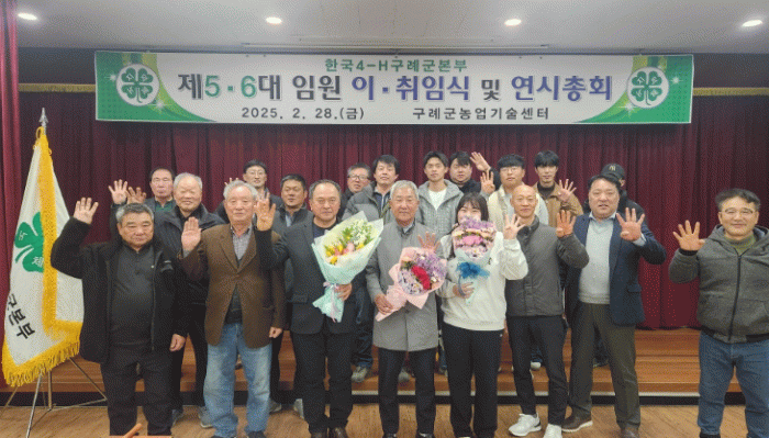 이정선 신임 회장은 취임사를 통해 “4-H가 지역사회 발전을 위해 앞장서며 구례군 농업의 희망찬 미래를 만들어 가겠다”고 포부를 밝혔다.