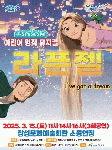 장성군 관계자는 “지난해 ‘상상더하기’ 공연의 큰 호응에 힘입어 올해는 2편을 늘려 총 8편의 공연을 준비했다”며 많은 관람을 부탁했다.