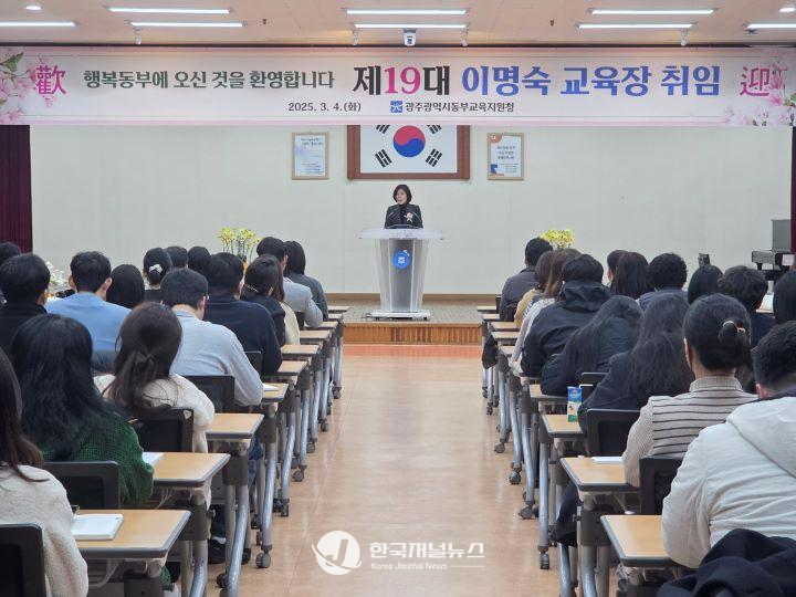 이명숙 교육장은 취임사를 통해 “다양한 실력으로 모두의 꿈을 키우는 동부교육이 될 수 있도록 우리 아이들의 성장과 배움을 최선을 다해 지원하겠다”며 “학생, 학부모, 지역사회, 교육가족이 힘을 모아 마음이 통하는 학교, 진심이 닿는 동부교육을 함께 만들어 가자”고 포부를 밝혔다.