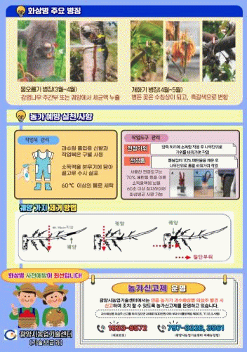 각 농가에서는 광양 지역의 기온이 3월 10일부터 급격히 오르는 것을 고려해, 꽃눈이 트는 상태를 반드시 확인하고 적정 시기에 화상병 1차 약제를 살포해야 한다.