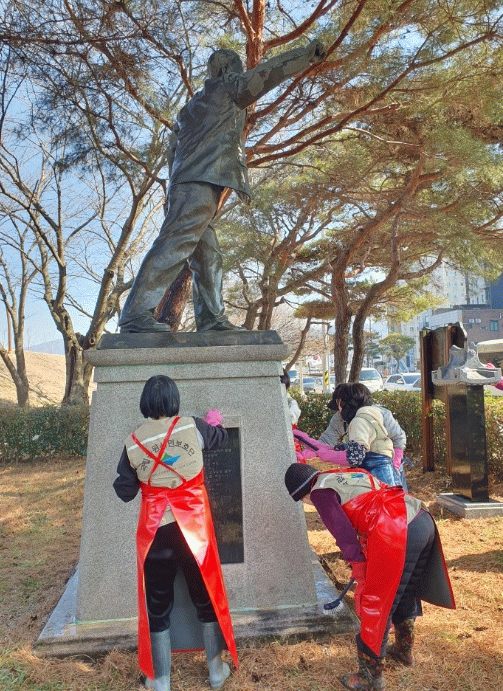 이번 작업은 구례군자원봉사센터 및 “산애삶애” 자원봉사센터 회원들과 함께 진행됐으며, 오랜 시간 쌓인 먼지와 오염물을 깨끗이 제거하고, 동상 주변 환경을 정비하여 보다 쾌적한 기념 공간을 조성했다.
