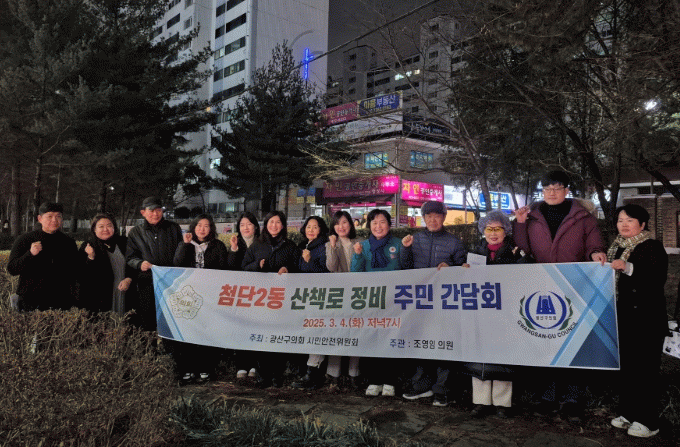 이날 간담회에서는 조영임 의원(더불어민주당, 첨단1·2동)이 첨단2동 주민, 관계 공무원 등과 직접 현장을 점검하며 산책로 환경 개선을 위한 다양한 의견을 교환했다.