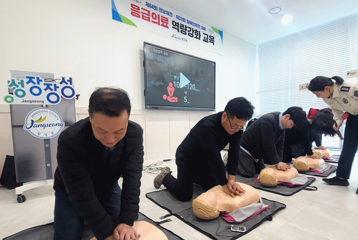 이번 교육은 장성 최초로 열리는 제64회 전남체전(4월 18일~21일), 제33회 전남장애인체전(4월 30일~5월 2일) 기간 발생할 수 있는 각종 응급상황에 빠르고 정확하게 대응하기 위해 마련됐다.
