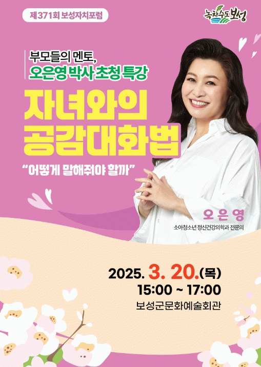 2025년 보성자치포럼의 첫 시작은 대한민국 대표 멘토 오은영 박사의 초청 강연으로 장식할 예정이다.