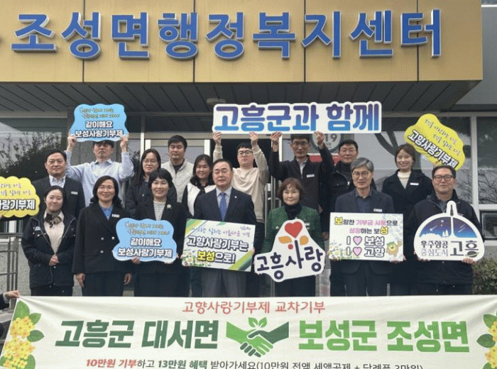조청미 대서면장은 “2025년 고향사랑기부제의 새로운 시작을 알리고, 득량만권으로 인접한 조성면과 앞으로도 다양한 교류 활동을 통해 상생 발전할 수 있기를 바란다”며, “고흥군 대서면의 향우 및 기관·사회단체에도 적극적인 참여를 부탁드린다”고 말했다.