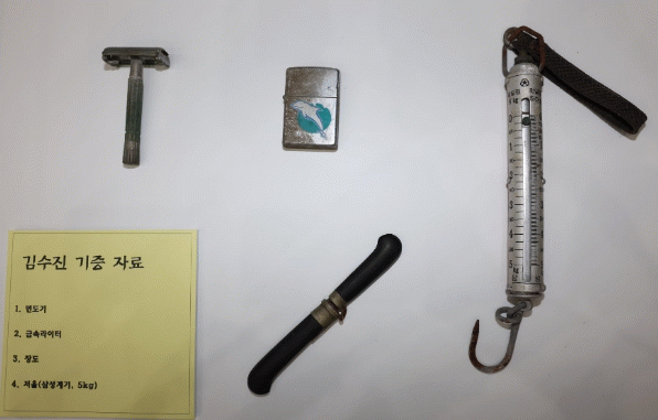 전시된 자료는 ▲법성면 제4대 면장 나칠순의 후손이 기증한 임명장 ▲나칠순의 아들인 나환문이 받은 감사장 ▲1937년 8월 법성체육회에서 주최한 수영대회 ▲용덕1리 발막마을 김수진이 기증한 목제함 ▲생활용품, 활(弓) 등이다.